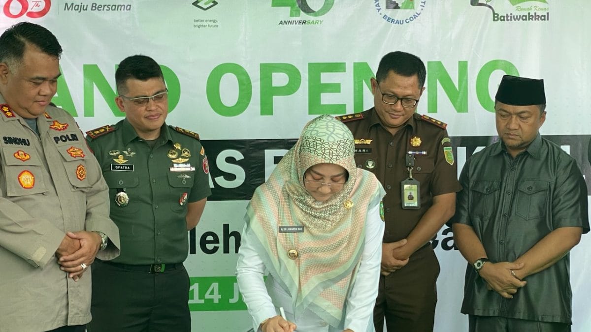 TANJUNG REDEB, HARIAN UTAMA- Bupati Berau, Sri Juniarisih Mas bersama unsur Forkopimda dan sejumlah OPD hadiri peresmian Rumah Kemas Batiwakkal di Jalan Pemuda, Kecamatan Tanjung Redeb, Rabu (14/06/2023).