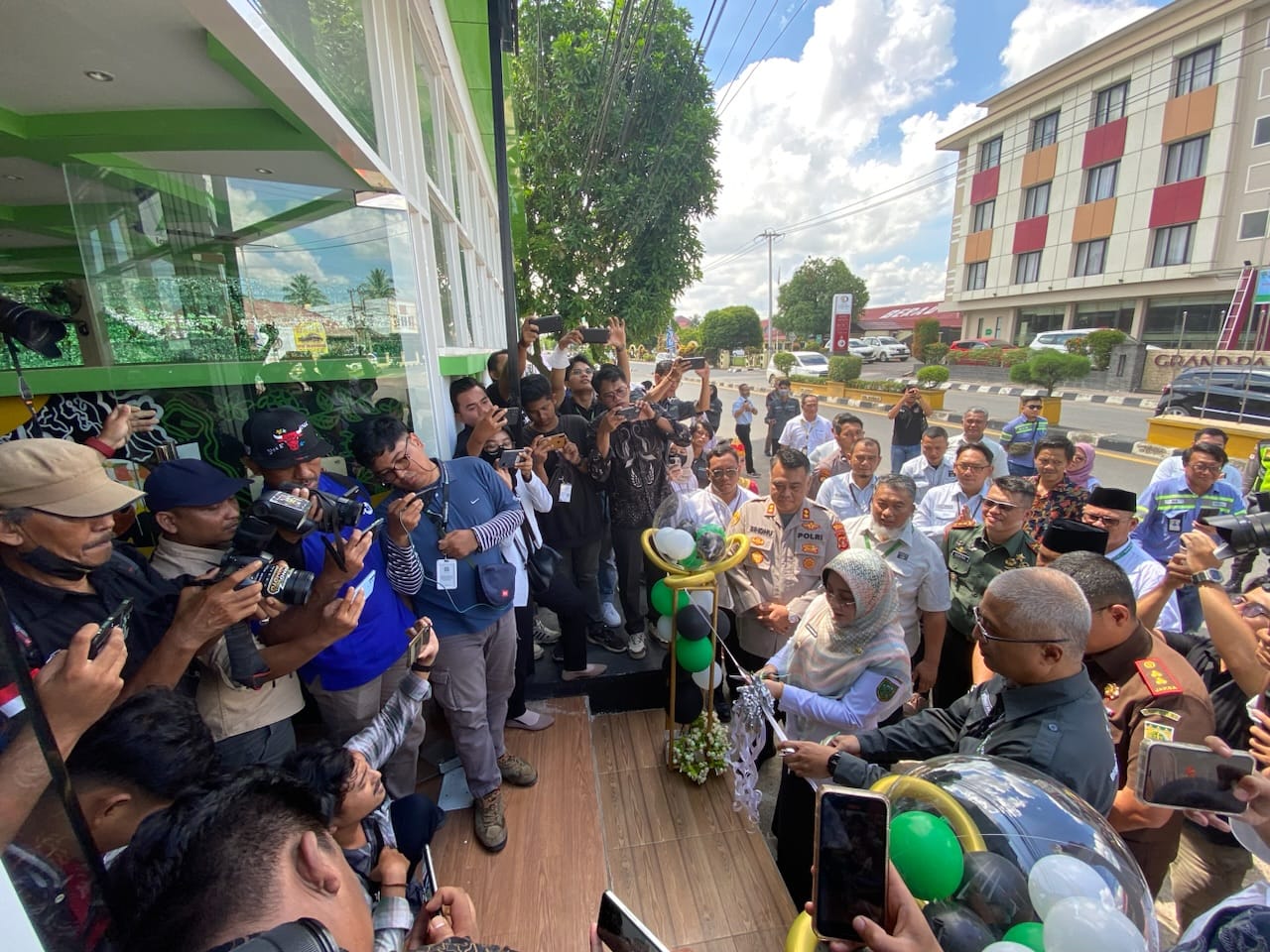 Setelah memberikan sambutan, Peresmian ditandai langsung dengan pemotongan pita oleh Bupati.
