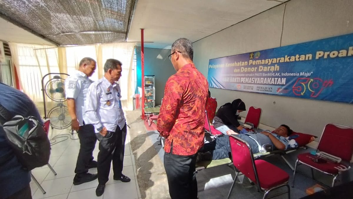 Giat Donor Darah bekerjasama dengan petugas PMI (Palang Merah Indonesia) Kabupaten Berau terselenggara dalam rangka HBP (Hari Bhakti Pemasyarakatan) Ke-59 Tahun 2023.