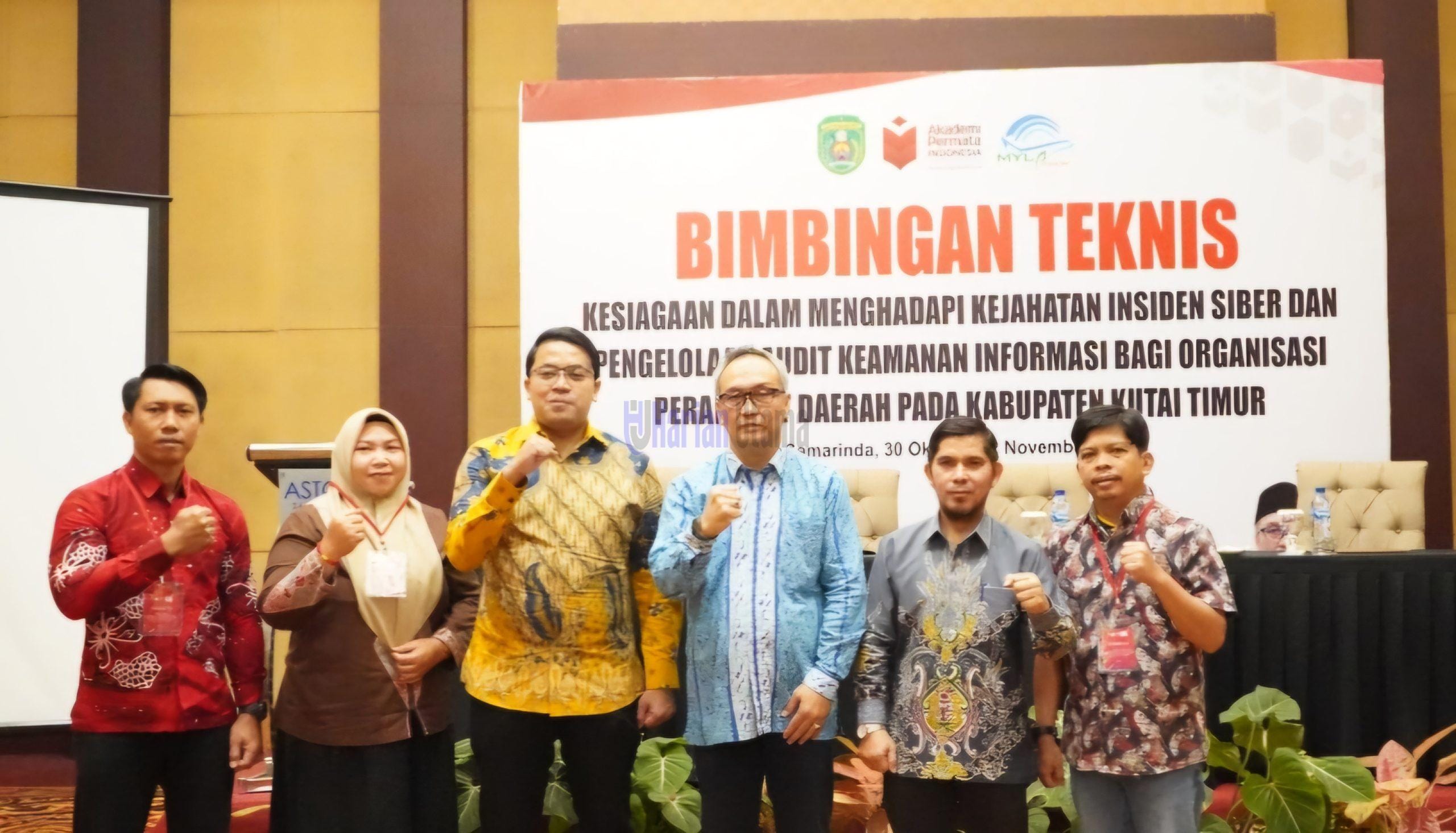 SAMARINDA – Dalam menghadapi ancaman siber yang semakin meningkat di era digital, Dinas Komunikasi, Informatika, Statistik, dan Persandian (Diskominfo Staper) Kabupaten Kutai Timur (Kutim) menggelar Bimbingan Teknis (Bimtek) di Aston Hotel & Convention, Samarinda, pada Kamis (31/10/2024). Kegiatan ini bertujuan untuk memperkuat kesiagaan siber di kalangan Perangkat Daerah (OPD) melalui pemahaman mendalam tentang risiko siber dan pengelolaan audit keamanan informasi.
