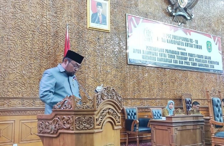 Sangatta – Fraksi-fraksi dalam Dewan Perwakilan Rakyat Daerah (DPRD) Kabupaten Kutai Timur (Kutim) menyampaikan pandangan umum mereka pada Rapat Paripurna ke-18, terkait Nota Penjelasan Pemerintah mengenai Rancangan Kebijakan Umum Anggaran (KUA) dan Prioritas Plafon Anggaran Sementara (PPAS) APBD 2024.
