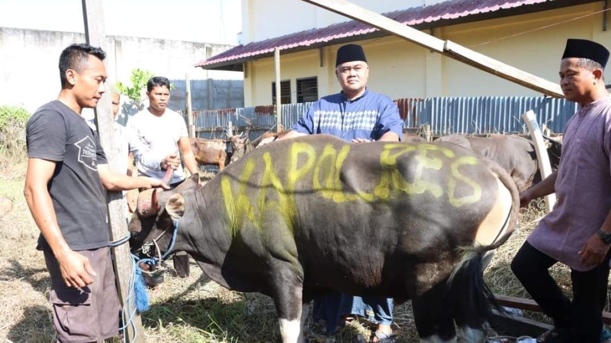TANJUNG REDEB, HARIAN UTAMA- Dalam rangka perayaan Hari Raya Idul Adha 1444 H dan memperingati Hari Bhayangkara ke-77, Polres Berau melaksanakan pemotongan hewan kurban. Kegiatan ini bertujuan untuk meningkatkan nilai-nilai kepatuhan dan moralitas di kalangan anggota Polri, serta mewujudkan Polri yang presisi dalam pelaksanaan tugas dan pelayanan kepada masyarakat.