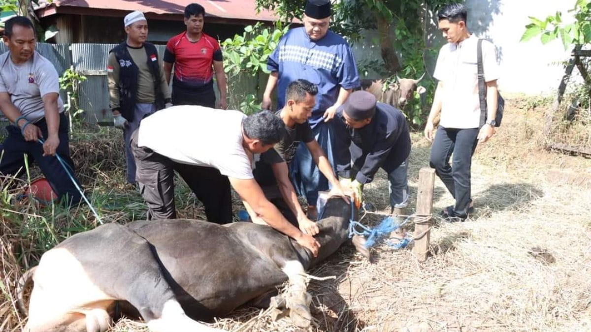 Pemotongan hewan kurban dilaksanakan dengan penuh khidmat dan dilakukan secara presisi oleh anggota POLRI yang terampil dan terlatih. Proses pemotongan dilakukan dengan memperhatikan aspek kebersihan, keamanan, dan kehalalan. Setiap langkah dilakukan dengan hati-hati dan sesuai dengan tata cara yang ditetapkan dalam ajaran agama.