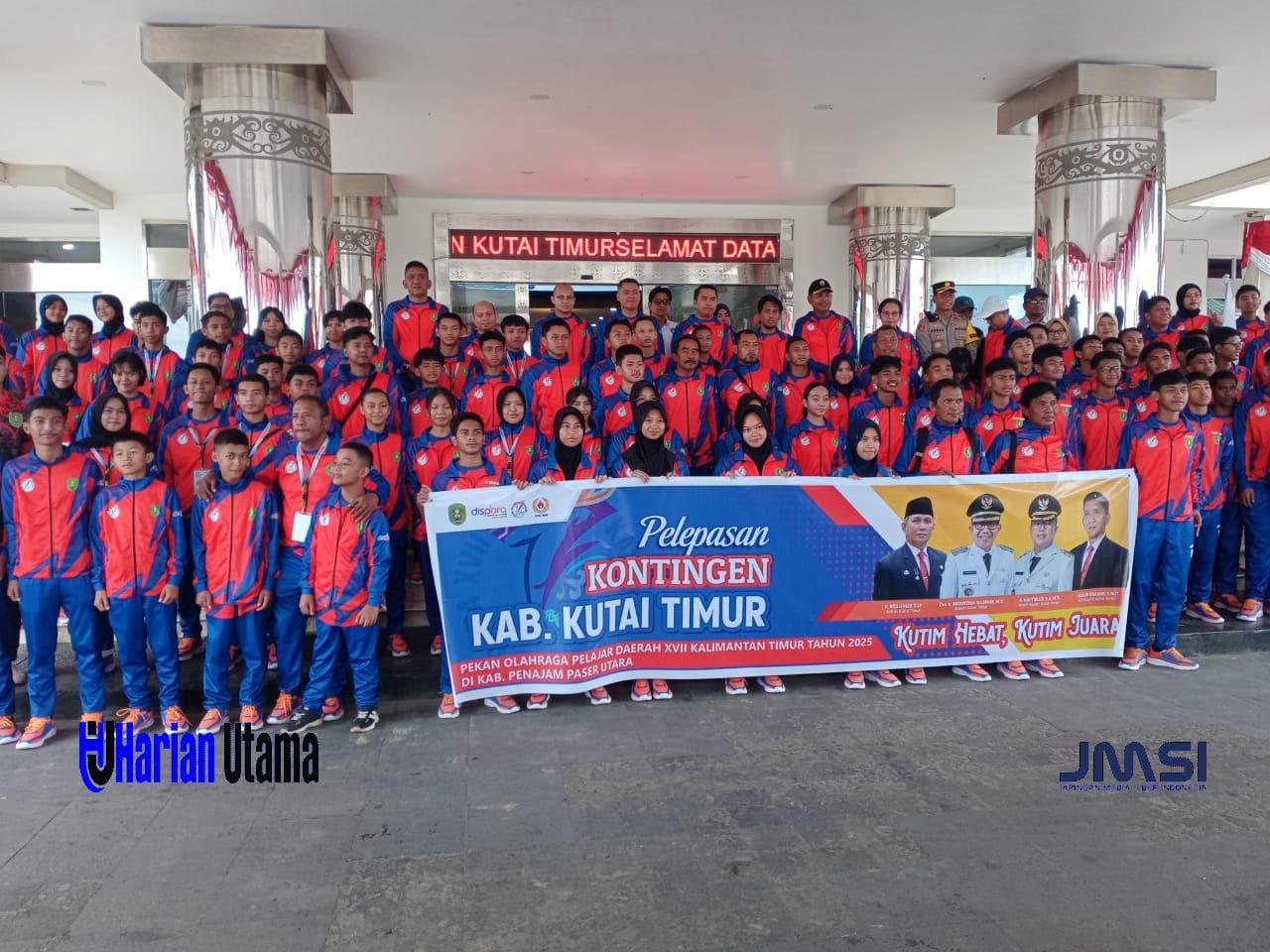SANGATTA – Wakil Bupati Kutai Timur (Kutim), Mahyunadi, melepas secara resmi Kontingen Kutim yang akan berlaga pada Pekan Olahraga Pelajar Daerah (POPDA) XVII Kalimantan Timur Tahun 2025 di Penajam Paser Utara. Pelepasan berlangsung di halaman Kantor Bupati Kutim, Bukit Pelangi Sangatta Utara, Selasa (18/11/2025).
