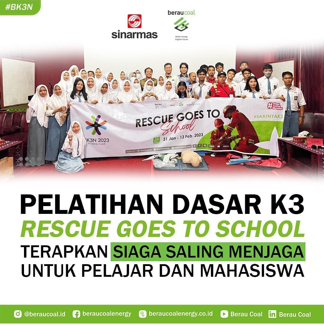 TANJUNG REDEB,HARIAN UTAMA- Sejalan dengan rangkaian kegiatan Bulan Keselamatan dan Kesehatan Kerja Nasional (BK3N) Tahun 2023, Berau Coal melalui Emergency Response Group (ERG) melakukan pembekalan keselamatan kepada mahasiswa dan pelajar di Kabupaten Berau dengan tema “Rescue Goes to School”.