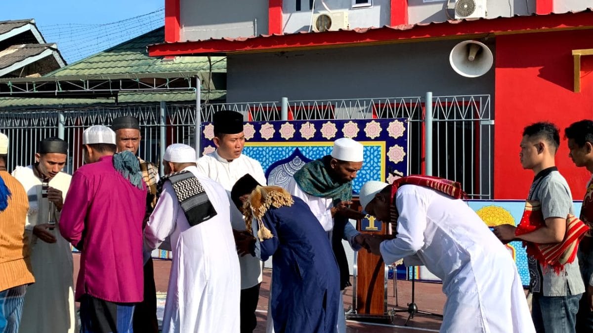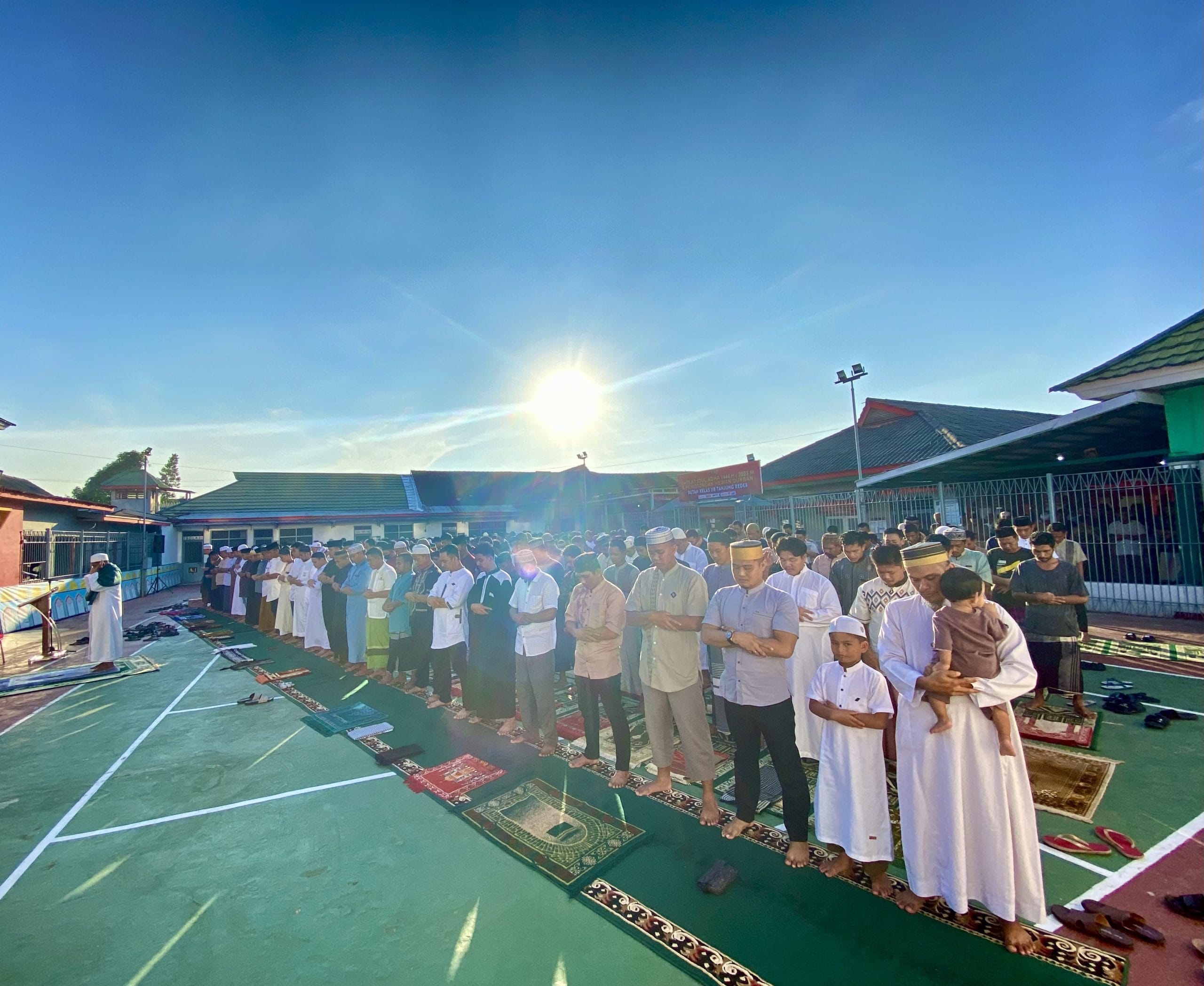 TANJUNG REDEB, HARIAN UTAMA- Gema takbir saling bersahutan di seluruh penjuru Bumi Batiwakkal, tak terkecuali di Rutan Tanjung Redeb, Pagi ini (29/06/2023) seluruh Warga Binaan Rutan Tanjung Redeb bersama Petugas melaksanakan sholat Idul Adha 1444 Hijriah di lapangan Rutan.