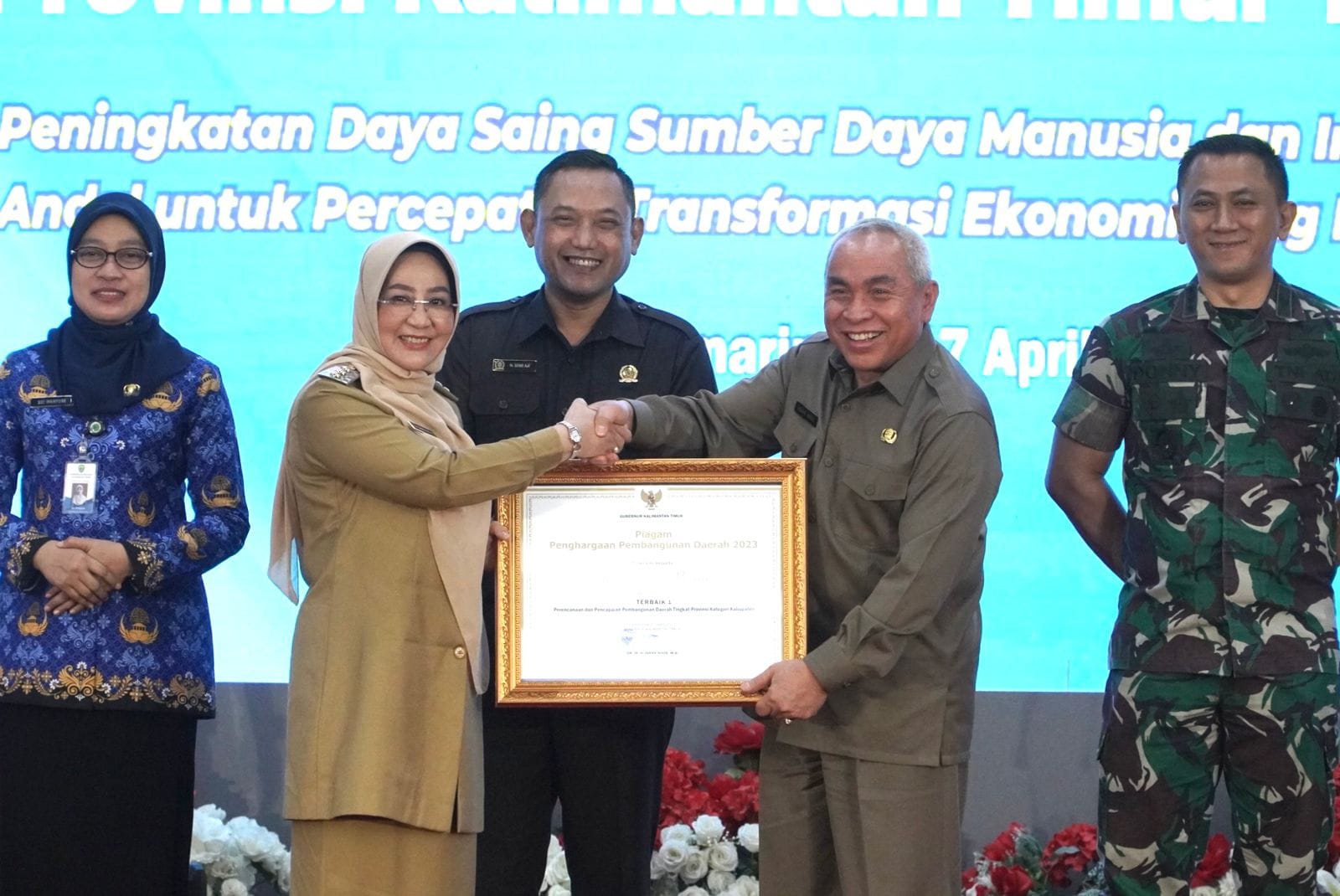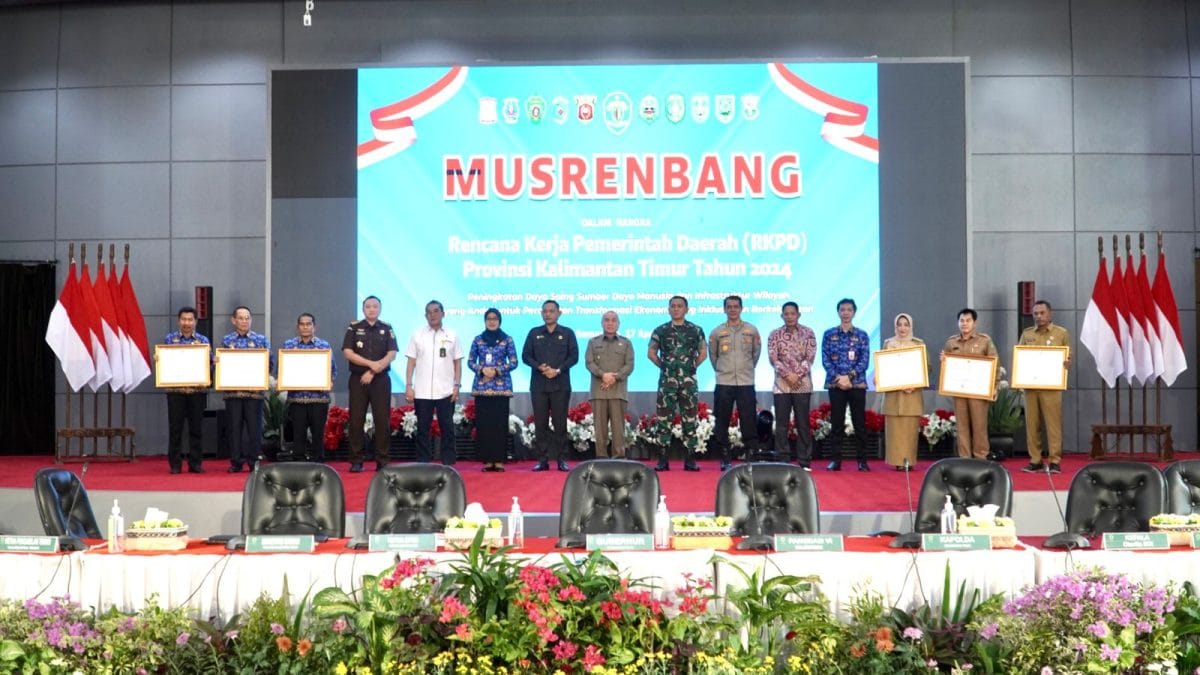 Penghargaan diserahkan Gubernur Kaltim, Isran Noor, pada pembukaan Musyawarah Perencanaan Pembangunan (Musrenbang) tingkat Kaltim di Odah Etam Komplek Kantor Gubernur Kaltim di Samarinda, Senin (17/4/2023).